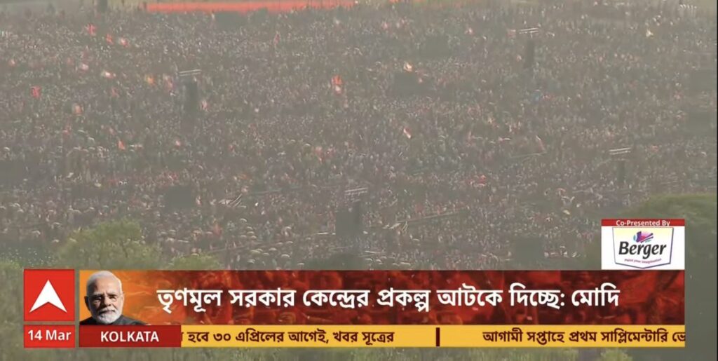 The Bharatiya Janata Party (BJP) concluded its โParivartan Yatraโ campaign with a huge rally held at the Brigade Parade Ground in Kolkata.TMC targets Modi, who saw the huge crowd at the rally, said the people of West Bengal now want change. He lashed out at Mamata Banerjee’s government from the stage, saying corruption, โcut moneyโ syndicates and political violence had become commonplace in the state.
